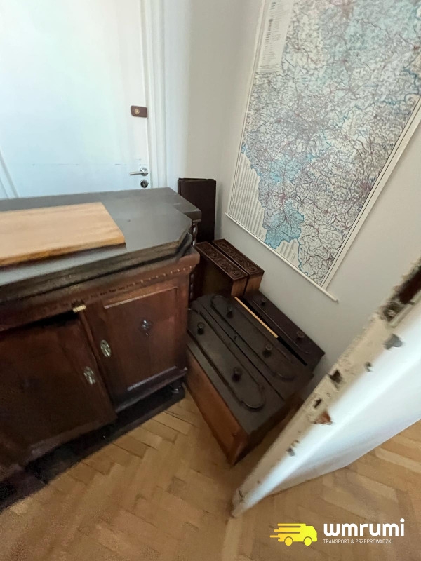 Ponieważ Klient chciał wycyklinować równie zabytkową podłogę wymagało to opróżnienia pomieszczeń z mebli, dywanów i wszystkiego co znajdowało się w pomieszczeniu. Nie byłoby problemu gdyby nie to, że tego typu stare meble są zrobione z litego drewna - w dodatku gęstego bo wysokiej jakości - czyli bez kompromisów, tak dobrze znanych z dzisiejszych sieciówek meblowych.