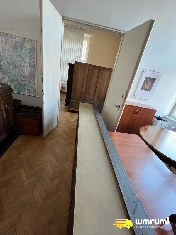Niestety nie mogliśmy sobie pozwolić na zabezpieczanie na czas przenoszenia więc proces wymagał od nas niezwykłej delikatności i prezycji. Szczególnie gdy musieliśmy przemykać pomiędzy wąskimi futrynami drzwii niosąc o własnych rękach kilkudziesiącio a czasem nawet i ponad 100 kilogramowe meble. Jedynie pojedyńcze elementy mogliśmy zdemontować na czas transportu pomiędzy salami.